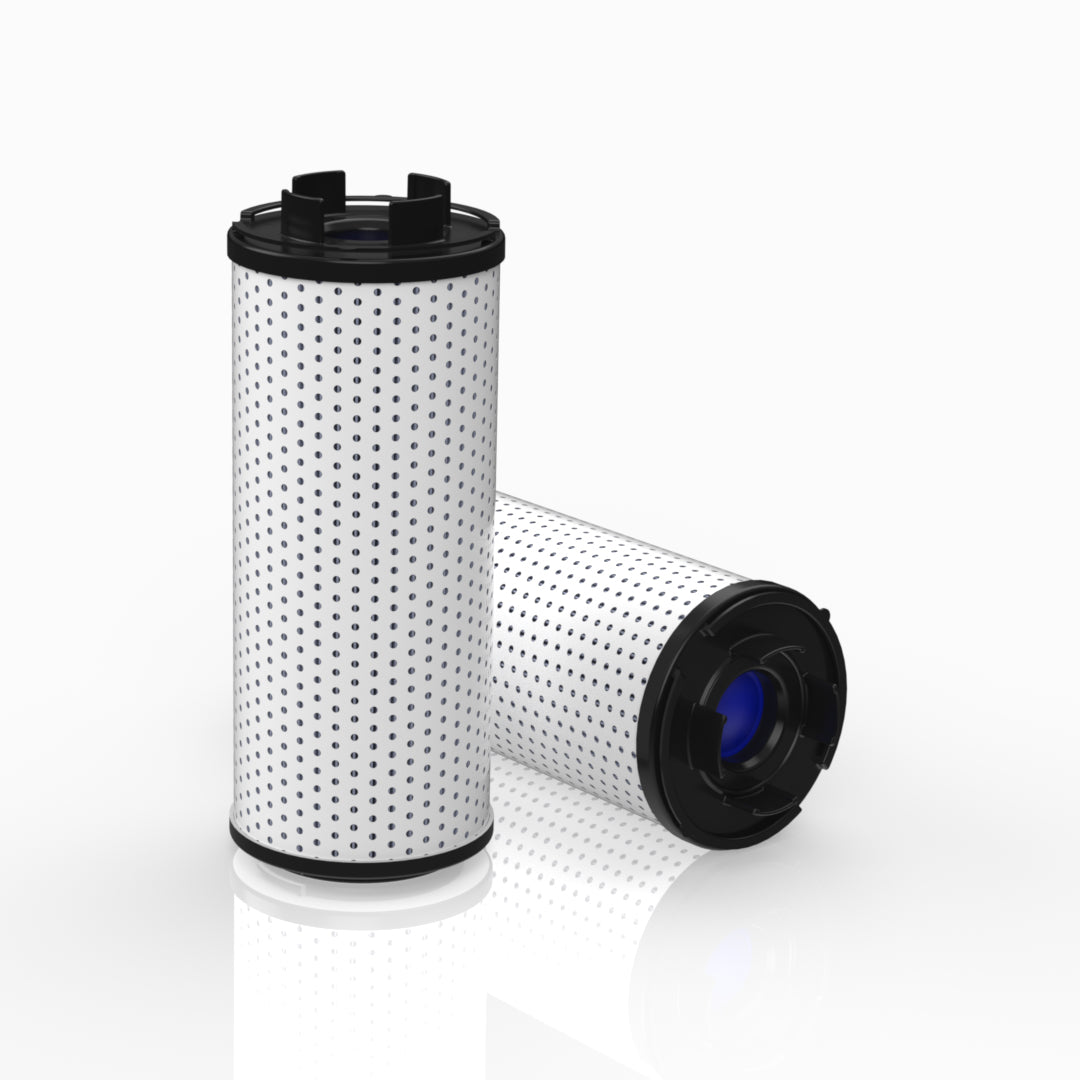 The efficiency of the element is shown using the Micron (µ) and Beta (β) ratings. The micron rating indicates the size of the particle being filtered and the beta rating the efficiency, calculated as 1/β.