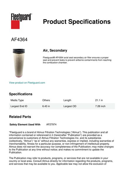 Fleetguard AF4364 Air, Secondary