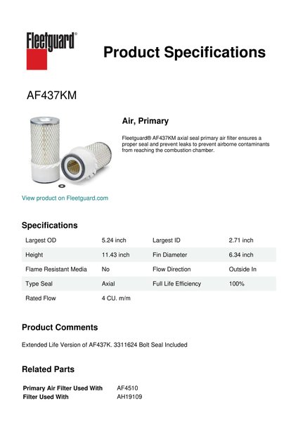 Fleetguard AF437KM Air, Primary