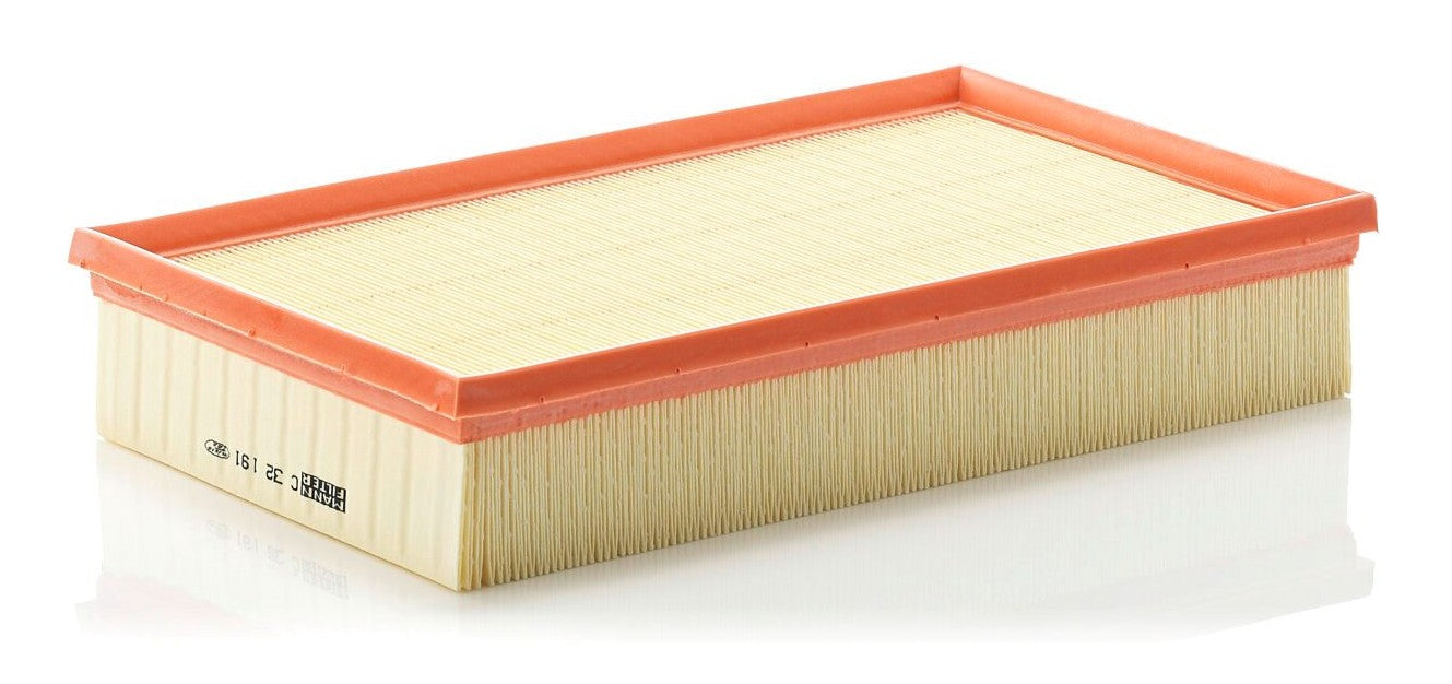 High-quality MANN-FILTER air filters for clean air intake and optimum protection for your engine, mass air flow sensor & other sensitive components / They meet requirements of modern engine technology. Highest dirt holding capacity and dirt separation efficiency, low flow resistance and high pleat stability ensure functional reliability during the entire service interval.