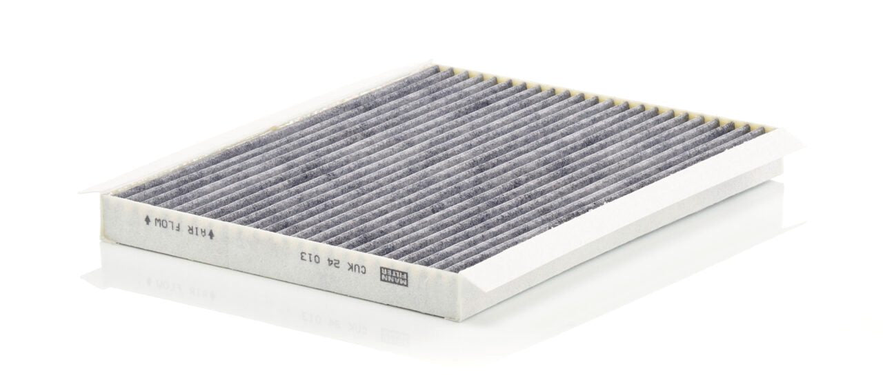 High-quality MANN-FILTER cabin filters with active carbon - nearly 100% protection from particles like pollen, diesel soot & tyre abrasion / Additional protection from harmful gases & unpleasant odour. The trated highly-effective activated carbon gives protection against harmful gases such as ozone, nitrogen oxide or sulphur dioxide and eliminates unpleasant odours during the entire service interval.