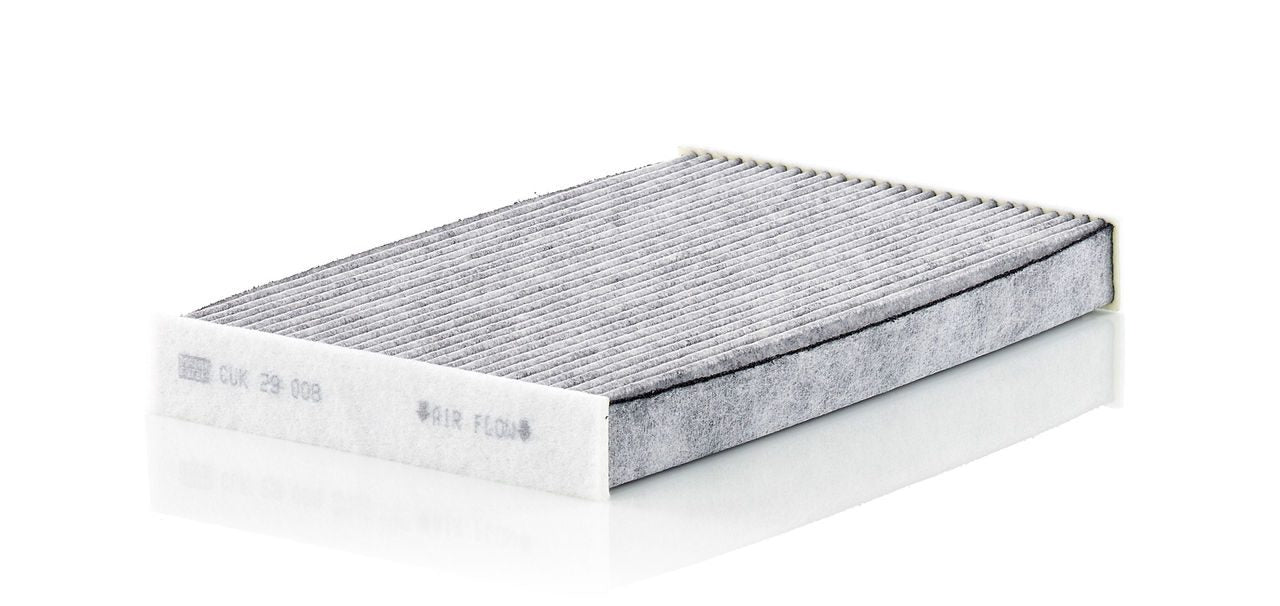 High-quality MANN-FILTER cabin filters with active carbon - nearly 100% protection from particles like pollen, diesel soot & tyre abrasion / Additional protection from harmful gases & unpleasant odour. The trated highly-effective activated carbon gives protection against harmful gases such as ozone, nitrogen oxide or sulphur dioxide and eliminates unpleasant odours during the entire service interval.