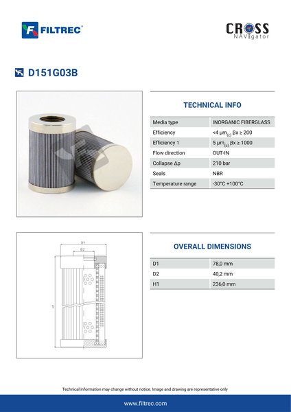 Genuine Filtrec D151G03B. This Filtrec element is designed to meet or exceed the quality and performance of brand OEM’s ensuring superior filtration performance and long-lasting durability.