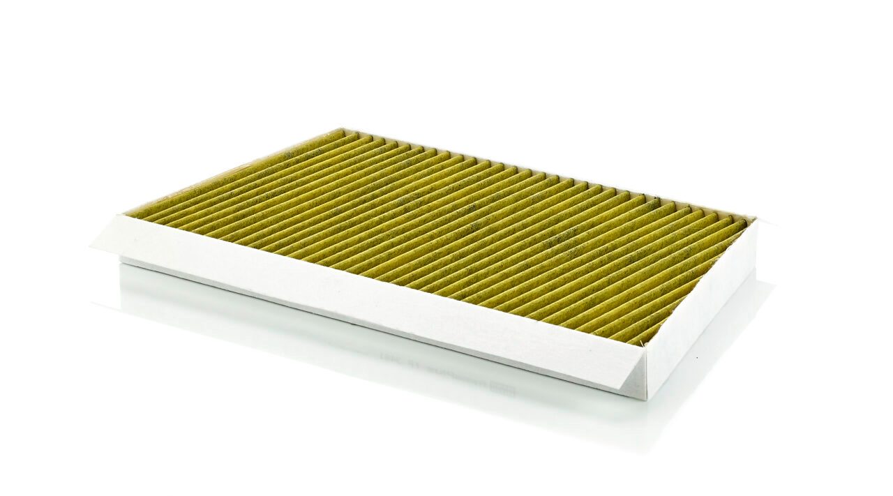 Biofunctional MANN-FILTER FreciousPlus cabin air filters - nearly 100% protection against nitrogen oxides, dust, allergens and mould - harmful gases and unpleasant odours are also eliminated and virus aerosols filtered. The three-layer filter technology absorbs almost 100% of allergens, reduces the growth of molds and bacteria by more than 98% and stops fine dust almost completely.