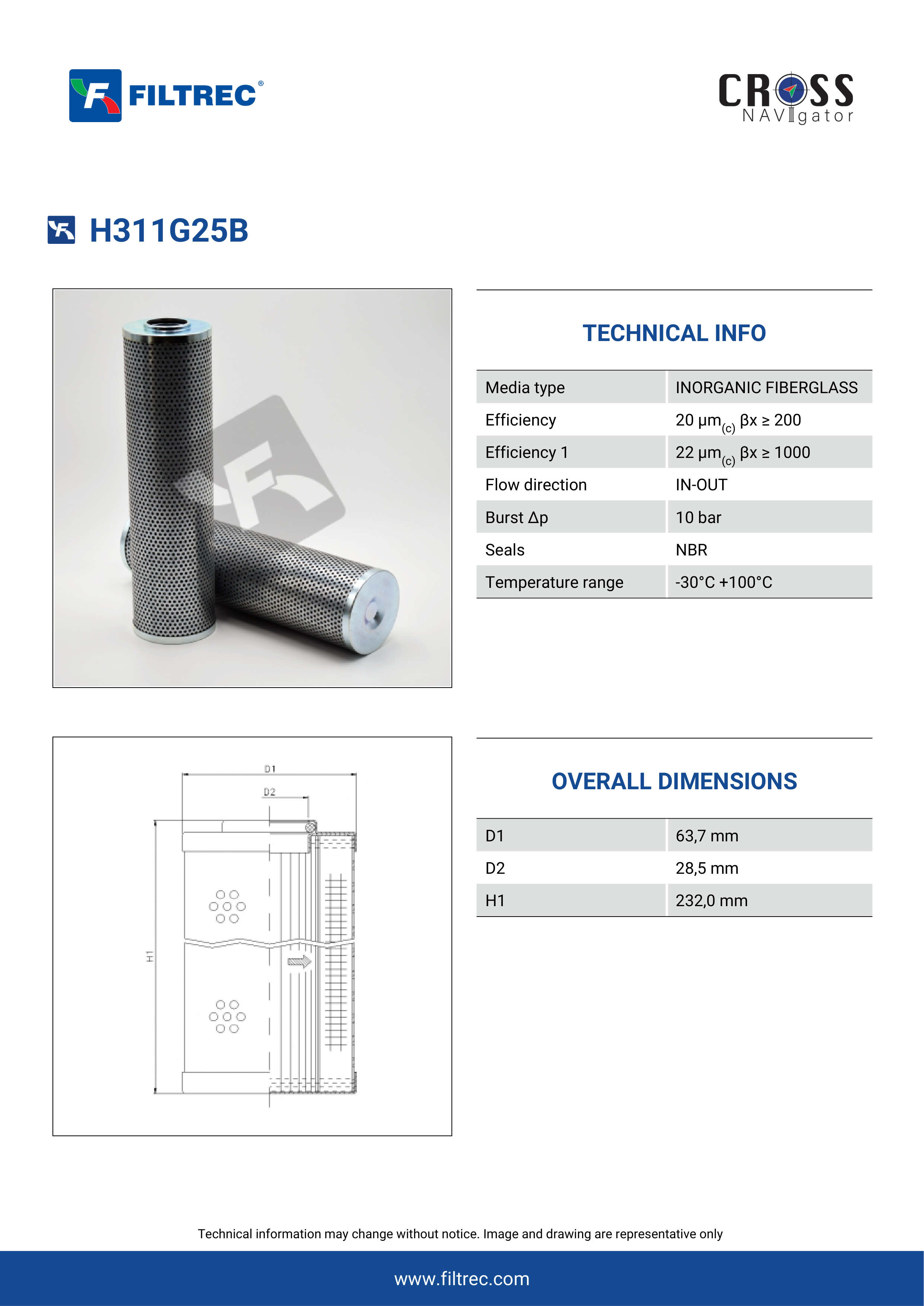 Genuine Filtrec H311G25B. This Filtrec element is designed to meet or exceed the quality and performance of brand OEM’s ensuring superior filtration performance and long-lasting durability.